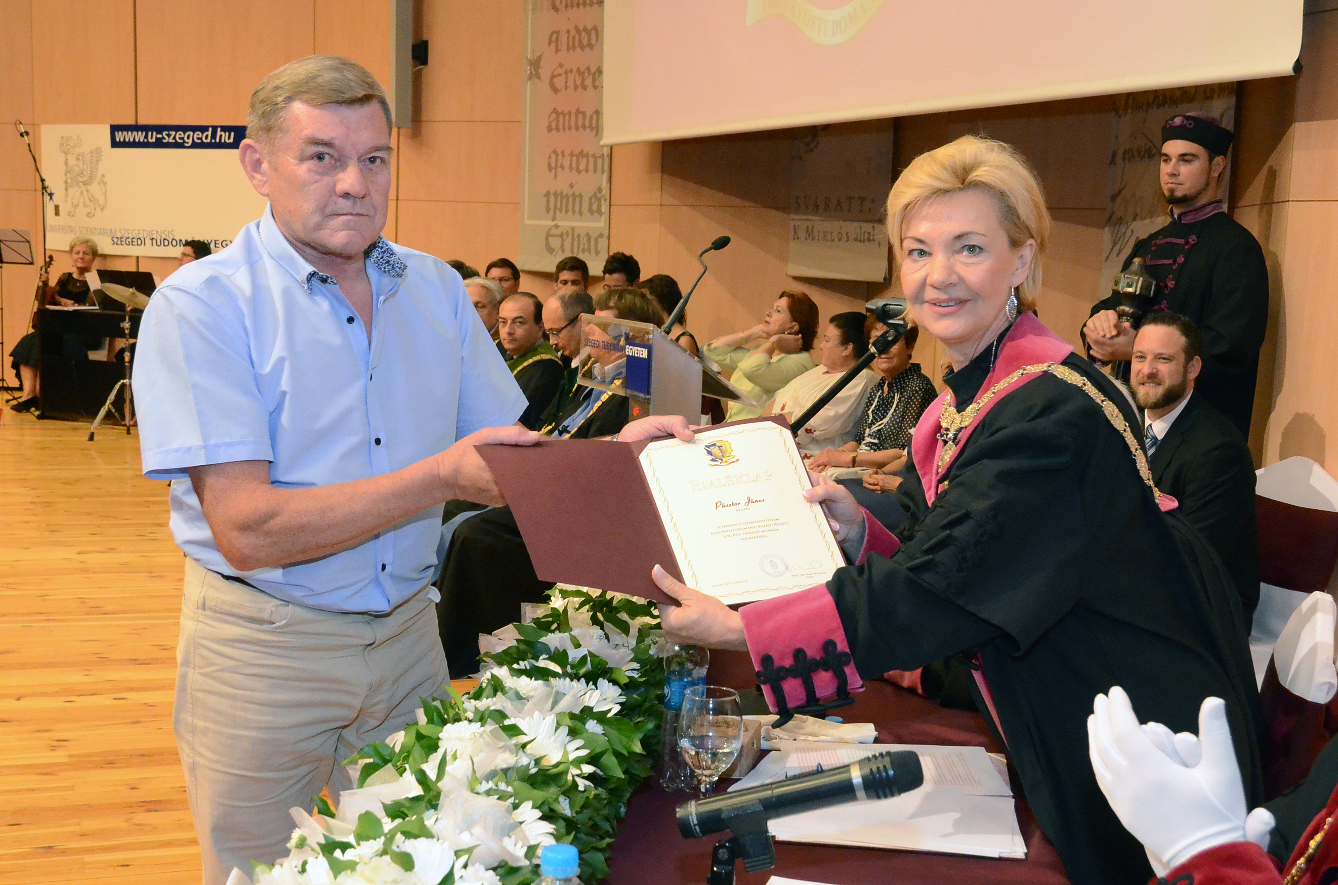 Prof. Dr. Gorzó István egyetemi tanár elévülhetetlen érdemei, valamint a Fogorvostudományi Karért végzett több évtizedes áldozatos munkája elismeréseként a Szegedi Fogorvosi Iskola alapítójának, Tóth Károlynak emléket állító plakettet, valamint elismerő oklevelet vett át.