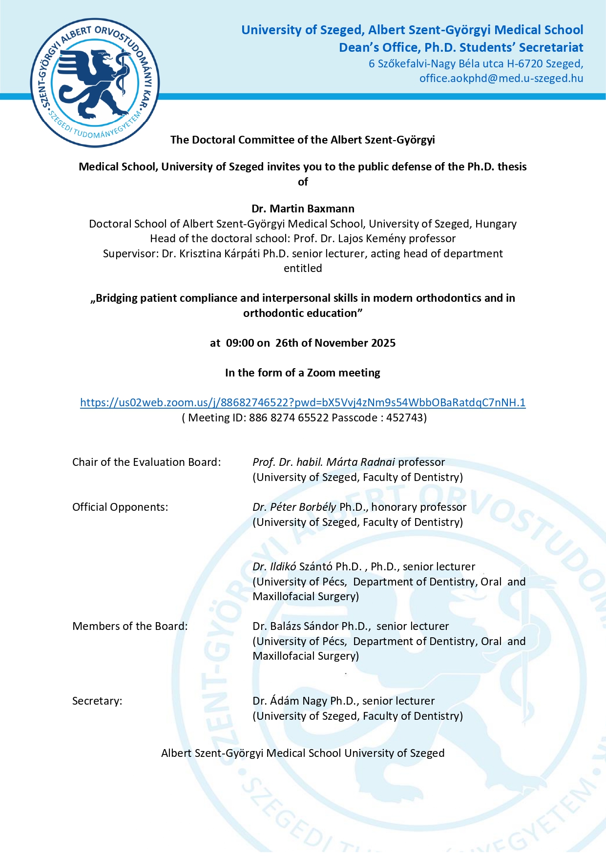 Meghívó: Dr. Martin Baxmann doktori (PhD) értekezésének nyilvános vitájára